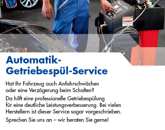 Auch die Wartung incl. professionellem Spülverfahren für AUTOMATIKGETRIEBE gehört zu unseren Leistungen.